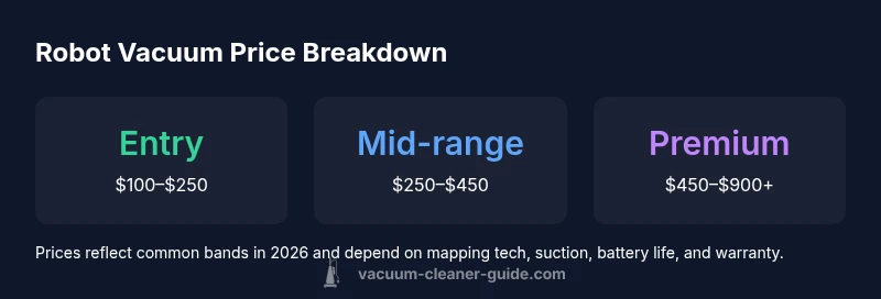 Quick answer: Cleaning robot price varies mainly by navigation tech, suction power, and battery life. Entry-level models typically fall in the $100–$250 range, mid-range robots in the $250–$450 range, and premium machines $450–$900+; the exact price depends on mapping tech (Lidar vs. camera), app features, and brand confidence. Vacuum Cleaner Guide analysis notes price bands shift with supply and demand in 2026.