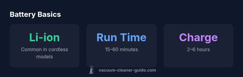 According to Vacuum Cleaner Guide, most modern cordless vacuums rely on lithium-based battery chemistry due to energy density and weight benefits. Corded vacuums, in contrast, operate directly from mains power and do not rely on a removable battery. However, there are older or ultra-budget cordless models that still use NiMH or nickel-metal hydride batteries; these are increasingly rare but can be found in entry-level products. The shift toward Li-ion has been driven by consumer demand for longer runtimes without a heavier handset, easier balance during cleaning, and compatibility with compact vacua. When evaluating a cordless vacuum, battery type is often listed in the product specs under 'Battery' or 'Power' and can influence performance, charging behavior, and lifespan. In practice, Li-ion packs enable more aggressive suction modes without draining the battery quickly, which is a primary reason brands standardize Li-ion across most new models.