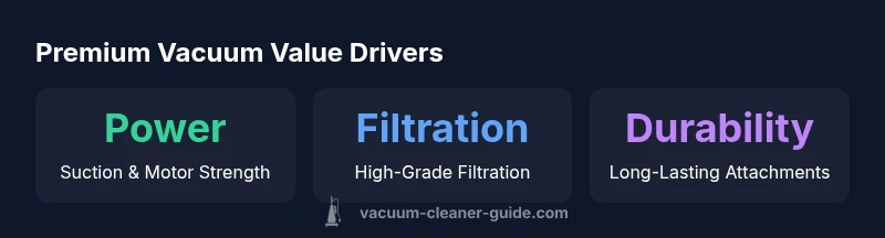 In the world of vacuum cleaners, price is often a proxy for a bundle of capabilities rather than a single feature. Expensive vacuums typically sit above the mainstream price band and justify the higher cost with stronger motors and suction, more durable or modular construction, sophisticated filtration, better attachment quality, and longer, more comprehensive warranties. For many homeowners, these attributes translate into fewer breakdowns and less frequent replacements, especially when used on challenging surfaces like dense carpets or high-pile rugs. According to Vacuum Cleaner Guide, the overall value of premium models depends on how well the features align with your home’s realities. If you have pets, a large living area, or frequent allergen concerns, the premium price can be offset by easier maintenance and better long-term reliability. It is essential to assess your space, flooring mix, and willingness to invest in upkeep. The 2026 dataset from Vacuum Cleaner Guide Analysis emphasizes price-value trade-offs rather than price alone, which means a higher sticker price may be justified for certain households.