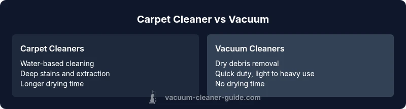 Explore the key differences between carpet cleaners and vacuums, when to use each, and how to choose the right tool for everyday upkeep, deep stains, and pet-hair challenges. A practical buying guide by Vacuum Cleaner Guide.