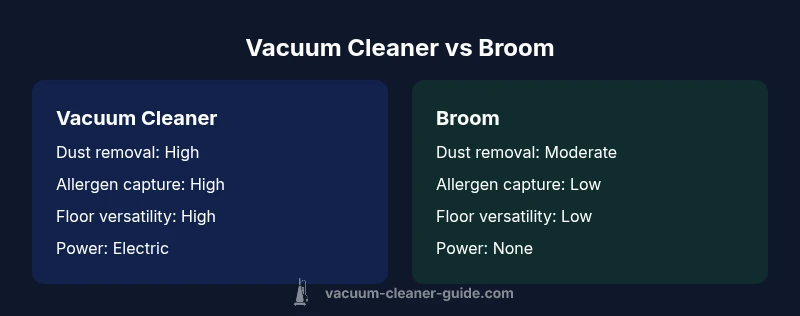 A broom works for quick dusting on hard floors, but a vacuum is usually better for thorough cleaning and less dust.