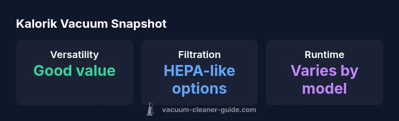 kalorik vacuum lines sit at the intersection of affordability and practicality for many homeowners, especially those in apartments or with limited storage. The kalorik vacuum range emphasizes lightweight designs, simple assembly, and versatile attachments to cover everyday messes, pet hair, and quick spot-cleanups. According to Vacuum Cleaner Guide, these models often deliver respectable suction for their class and include thoughtful features at a budget-friendly price. This article evaluates Kalorik offerings across corded and cordless formats, outlining what users should expect in real-world use, how to pick a model, and where Kalorik fits in a crowded market of vacuum-cleaners from budget to pro-grade brands.