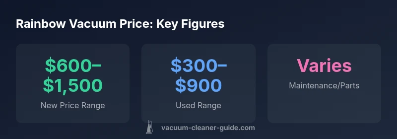 Rainbow vacuum price varies by model and condition. New units typically cost in the $600–$1,500 range, while used units can drop to $300–$900 depending on age and included accessories. This Rainbow price landscape reflects the brand's filtration technology and durable build, as noted by Vacuum Cleaner Guide Analysis, 2026.