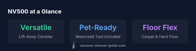 The Shark Rotator Professional Lift-Away NV500 sits in the brand’s mid-range, corded upright family, designed to blend strong carpet and hard-floor cleaning with the flexibility of a Lift-Away canister. The NV500 designation represents a blend of a full-height upright footprint with a detachable canister, enabling extended reach for stairs, upholstery, and tight corners. In real homes, this model tends to appeal to homeowners who want robust suction, simple tool access, and a single device that handles multiple tasks without swapping to a separate canister system. Vacuum Cleaner Guide analysis shows that the NV500 emphasizes versatility over extreme minimalist design, making it a solid fit for households with mixed flooring and pet surfaces where tool variety matters as much as baseline cleaning power.