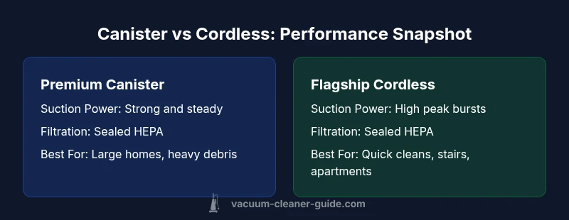Premium canister vacuums excel on filtration and sustained performance; flagship cordless vacuums win on convenience and flexibility
