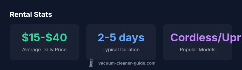Renting a vacuum cleaner near me for rent is a practical, cost-efficient option for short-term needs, seasonal cleaning, or even trying out premium models before committing to a purchase. For many households, the decision to rent hinges on how often you clean, the type of surfaces you manage, and whether you anticipate future spikes in cleaning tasks—such as after a rug installation or pet shedding season. According to Vacuum Cleaner Guide, rental markets have adapted to consumer demand by offering a broad spectrum of equipment—from compact cordless units to heavy-duty upright cleaners with advanced filtration. For renters and homeowners alike, understanding when renting makes sense and how to maximize value is essential. Budget-conscious families can avoid large upfront costs, while you can access high-end features such as improved filtration and specialty tools without owning the equipment long-term. In short, renting provides flexibility, guaranteed up-to-date models, and the ability to match the tool to the task at hand. The cost-benefit analysis often favors renting when the expected use is limited to a few weeks or a single project, especially if you factor in maintenance and storage considerations.