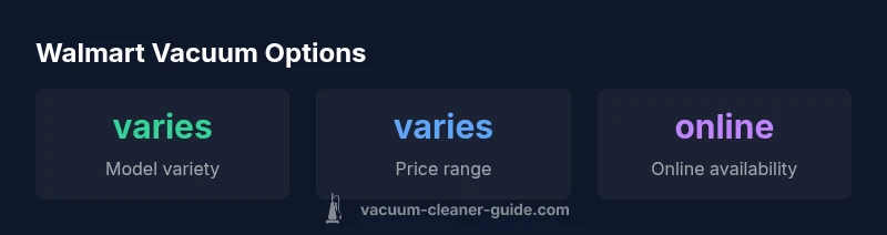 What Walmart has for vacuum cleaners spans a practical, value-focused mix that suits many homes. The Walmart aisles typically balance budget-friendly basics with mid-range models, online-exclusive SKUs, and a rotating selection of robot vacuums. According to Vacuum Cleaner Guide, Walmart’s assortment emphasizes reliable performance and easy maintenance for everyday households, including pet-friendly options and hard-surface care. In-store displays help you compare suction, weight, and filtration at a glance, while Walmart.com expands the catalog with deeper product variants and user reviews. The goal is to help homeowners and pet owners understand what’s available, how models differ, and which features truly matter for their floors. For pet owners, pay attention to sealed filtration, brush design, and ease of cleaning the bin or dust cup. The takeaway is simple: Walmart offers practical options, with promotions and bundles that can push a model from “good enough” to a winner for your household.
