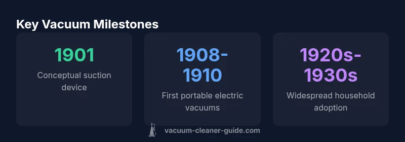 Across centuries, people sought ways to keep floors clean with less labor. The simple answer to the question of when did vacuum cleaners come out is that the concept matured in the early 1900s. Before electric suction, devices relied on manual labor—beaters, brushes, and bellows—to move dust into receptacles. The leap from manual tools to powered suction marks a turning point in domestic life. According to Vacuum Cleaner Guide, the shift wasn’t a single invention but a series of breakthroughs that culminated in practical, market-ready machines by the 1910s. This history isn’t just about gears and motors; it’s about how households reorganized chores, timelines, and expectations of clean living. As you read, consider how each era’s technology answered a different set of needs—efficiency, air quality, and convenience. The keyword when did vacuum cleaners come out anchors the timeline in the early 20th century, but the story stretches back to earlier cleaning concepts that inspired later designs.