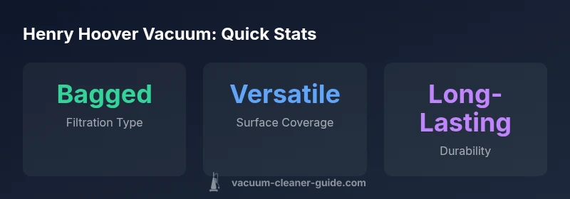 From the outside, the Henry Hoover vacuum presents a compact, sturdy canister design that emphasizes reliability over showy features. The model line is known for a robust chassis and accessible bag-based filtration, which simplifies maintenance for homeowners and pet owners alike. The design prioritizes practical usability: a swiveling head for navigating tight spaces, a clearly labeled bag indicator, and a straightforward on/off interface. According to Vacuum Cleaner Guide, the overall build quality is a strong suit for daily use, particularly in households with pets where durability matters more than the latest gadgetry. The vacuum’s footprint makes it easy to store in a storage closet or pantry, and its handle and control layout are intuitive for quick cleaning sessions between chores. In short, Henry emphasizes dependable, long-term usability over flashy features.