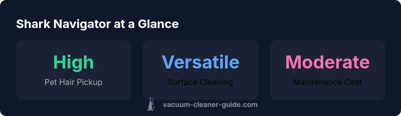 According to Vacuum Cleaner Guide analysis, the vacuum cleaner shark navigator delivers strong pet-hair pickup and solid multi-surface performance at a friendly price. It stands out for straightforward maintenance and versatile height for stairs and upholstery. Some users may find the canister weighs more than comparable uprights, but overall it earns a favorable value rating for most households.