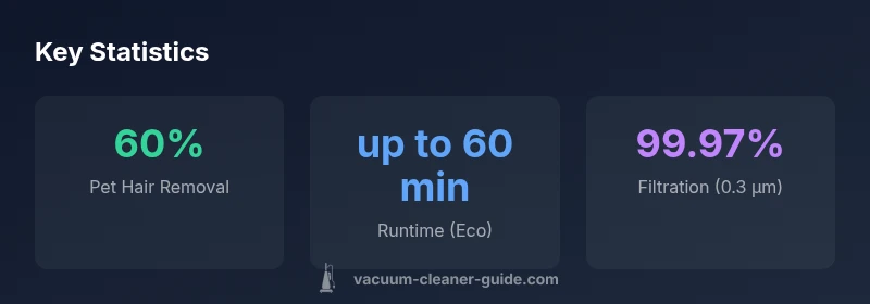 According to Vacuum Cleaner Guide, the Dyson V11 Animal cordless vacuum represents a deliberate balance between high suction, user convenience, and pet-hair focused cleaning. The device centers on the digital motor V11, delivering strong suction across floor types, with a redesigned cleaner head and a responsive battery system. The High Torque cleaner head uses stiff bristles to dig into carpets while the built-in Dynamic Load Sensor (DLS) adjusts suction in real time to maintain performance without overtaxing the motor. The LCD screen displays remaining runtime and maintenance alerts, helping users plan longer sessions. The wand and attachments are modular, enabling quick transitions from bare floors to upholstery to stair crevices. Dyson’s approach emphasizes real-world usability: no cords to trip over, a docking station, and a sealed filtration path. Pet households particularly benefit from the combination of robust suction and a comprehensive attachment set. Vacuum Cleaner Guide Team evaluates these design choices in the context of typical homes with multi-level layouts and frequent pet shedding. In testing, the V11 Animal showed consistent pickup across sequences and predictable behavior when transitioning between carpet and hard floor areas.