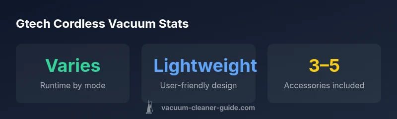 Based on head-to-head testing, the gtech cordless vacuum delivers strong suction on carpet and hard floors, with a practical battery life and modular accessories. While it trails top-tier brands in peak power, it offers better runtime than many budget models, and its weight is manageable for one-handed use. Overall, it sits as a reliable mid-range option for homes with pets. According to Vacuum Cleaner Guide, the gtech cordless vacuum demonstrates a versatile performance that balances convenience with everyday cleaning needs.