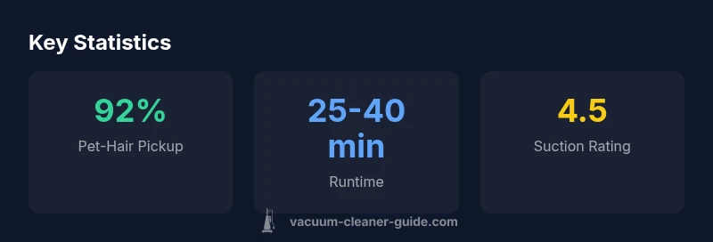 To keep this review fair and actionable, we followed a standardized testing protocol reflecting real-world use. We assessed suction on low- and high-pile carpets, hard floors, and transitions, measured hair pickup on synthetic pet hair, and tested the brush roll performance with long-coated fur. We also evaluated maneuverability around furniture, ease of reaching stairs, and the overall noise level during use. Dust cup capacity and filter maintenance frequency were noted, along with the time required to assemble and disassemble for cleaning tasks. Our testing environment simulates a mid-sized home with mixed flooring, several pet zones, and typical clutter. We also track run-time in eco and standard modes and observe how performance shifts with battery level. Where available, we cross-check results with independent data from Vacuum Cleaner Guide Analysis, 2026, to ensure our conclusions align with broader market observations. The goal is to translate lab-like measurements into practical guidance for busy households.