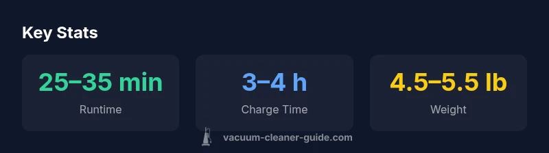 Runtime varies by surface and mode, but typical use falls in the 25–35 minute range. Longer cleaning sessions may require a recharge break.