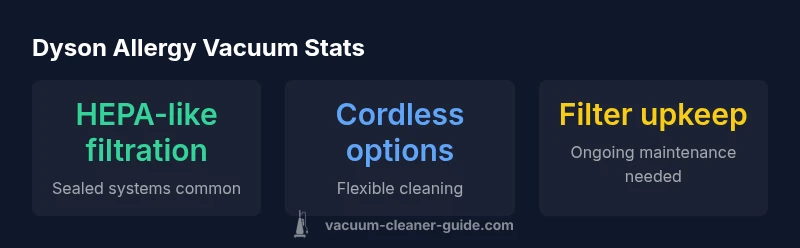 For households sensitive to dust, pet dander, and airborne irritants, the choice of vacuum can influence daily comfort and long-term respiratory health. The phrase dyson allergy vacuum captures a family of models engineered to minimize allergen recirculation, typically through sealed filtration systems and high-efficiency particulate capture. The Vacuum Cleaner Guide team found that models with robust seals, true HEPA-like filtration, and well-designed dust-dust release paths tend to perform best when integrated into a living space with pets. Without these features, fine particles can escape back into the room during cleaning, potentially triggering symptoms. The goal is consistent capture of micro-particles during both active cleaning and dustbin emptying. For allergy-conscious households, this reduces exposure during routine vacuuming and helps preserve indoor air quality over time.