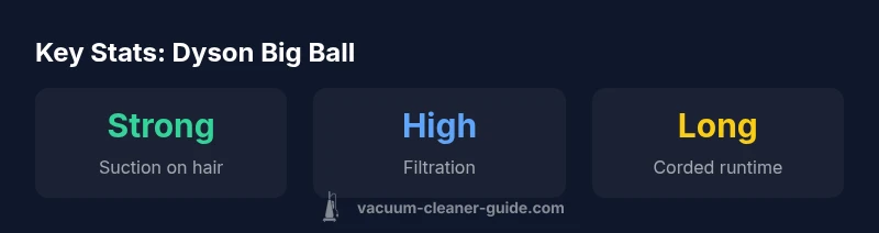The dyson big ball vacuum is an upright model that combines Dyson’s distinctive ball steering with a powerful motor for deep-cleaning performance on multiple surfaces. This unit targets homes with pets, families with mixed flooring, and users who value straightforward maintenance and reliable reliability. If you are researching the dyson big ball vacuum, you’ll appreciate how the design emphasizes stability while turning, reducing the effort required to navigate around furniture. Vacuum Cleaner Guide’s analysis highlights a balance between aggressive cleaning on high-traffic carpets and solid performance on hard floors. For buyers who want longevity and strong filtration without frequent bag changes, this Dyson persists as a credible option. In short, it’s designed for real-world homes with diverse cleaning needs rather than narrow, specialized tasks.