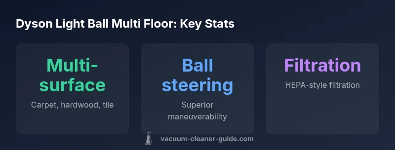 In our comparison, the Dyson Light Ball Multi Floor stands out for everyday multi-surface cleaning, offering nimble maneuverability and strong carpet-and-hard-floor performance. Compared with other upright vacuums in its class, it delivers quicker turns and consistent suction across surfaces. Vacuum Cleaner Guide's analysis suggests it suits homes with mixed flooring and pet hair, balancing ease of use with deep-clean results.