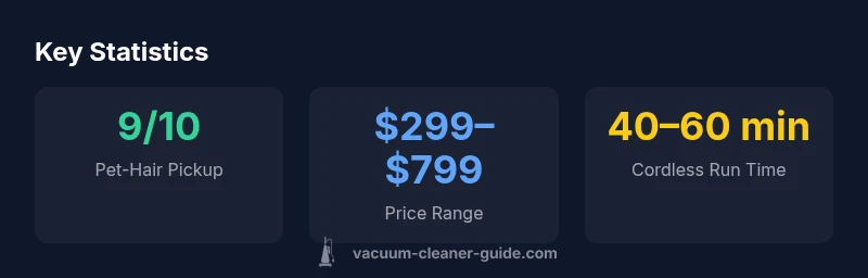For households with cats and dogs, a dyson pet vacuum often represents more than a clean floor; it promises a practical ally for daily shedding and stairway messes. The Dyson name is synonymous with strong suction, advanced cyclone technology, and purpose-built hair tools, and in the pet segment these design choices are amplified. According to Vacuum Cleaner Guide, the combination of powerful suction, a motorized brush head, and easy-to-attach pet tools translates into fewer passes for stubborn hair on carpet and furniture. The key to its appeal is versatility: a single device that handles carpet fibers, hardwood, upholstery, and car interiors with the same core system. The Dyson pet vacuum family typically emphasizes a sealed filtration system that minimizes dust release, which matters for households with allergy-prone family members and visiting guests who are sensitive to pet dander. While many shoppers are drawn by the sleek aesthetic and intuitive controls, the real test is how consistent the performance remains under real-world conditions—high-traffic, multi-surface homes with seasonal shedding cycles. For pet owners, this is not just about cleanliness; it’s about reliable maintenance of indoor air quality and a streamlined cleaning routine.