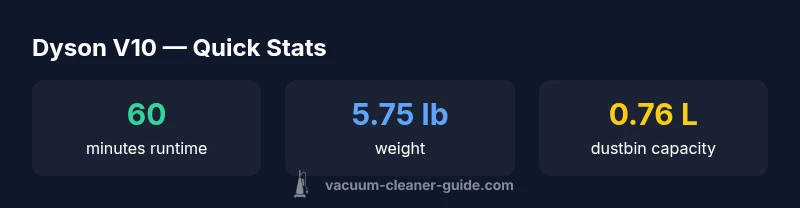When considering the Dyson V10, map your needs to the device’s strengths: cordless freedom, strong suction, and a wide toolset. If you prioritize budget, a used or refurbished V10 can be an attractive deal, but verify battery health and warranty. If you’re a pet owner with large cleaning chores, a newer model with extended runtime or more advanced filtration might be worth the extra cost. Consider your living space: multi-level homes with stairs benefit from light weight and quick tool changes, while larger homes may justify investing in higher-capacity or newer models. Vacuum Cleaner Guide’s guidance emphasizes reading user reviews and testing in-store where possible, then weighing the long-term costs of replacement batteries and replacement parts against upfront purchase price.