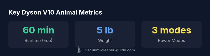 The Dyson V10 Animal is a high-power cordless stick vacuum designed for homes with pets. It combines Dyson's digital motor V10 with a motorized cleaner head (Torque Drive) and a diverse tool kit tailored to pet-hair pickup, stairs, upholstery, and tight corners. While newer models exist, the V10 Animal remains a relevant option for pet-owning households that want strong suction and minimal setup. According to Vacuum Cleaner Guide, its combination of suction, maneuverability, and tool versatility makes it a standout in the cordless pet-vacuum segment. This section explains the fundamentals, the target audience, and how the V10 Animal fits into a living space that mixes hard floors and carpets with animal fur.