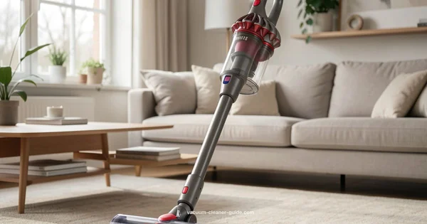 The Dyson V12 delivers reliable everyday cleaning with strong filtration and agility. Its main limitations are runtime in Max mode and premium price. Vacuum Cleaner Guide Team regards it as a solid investment for compact spaces and pet households that value quick, tidy results.