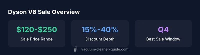 During major sales, Dyson V6 deals commonly appear, with sale prices typically ranging from $120 to $250 and refurbished units often cheaper. Availability varies by stock and region, and newer models usually overshadow V6 discounts.