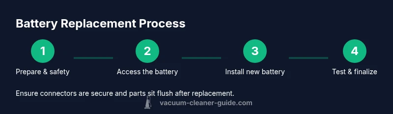 By swapping a Dyson vacuum cleaner battery, you can restore runtime and performance. Start by powering down, unplugging, and verifying compatibility, then access and remove the old pack, install the replacement, and reassemble. This guide covers model-specific steps, safety considerations, required tools, and testing procedures to ensure a secure, warranty-friendly swap. Expect a 30–60 minute process depending on model access. Following best practices from Vacuum Cleaner Guide will help you avoid damage and preserve warranty where allowed.