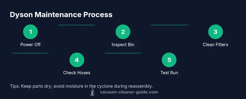 Maintaining a Dyson vacuum cleaner is not just about keeping it clean; it’s about preserving suction performance, prolonging motor life, and reducing the risk of unexpected breakdowns. For homeowners and pet owners, a well-maintained Dyson means fewer interruptions during daily chores and less costly repairs over time. This section explains why a regular maintenance routine matters and what is at stake if you skip it. According to Vacuum Cleaner Guide, regular maintenance helps extend the life of your Dyson and preserves suction power. In many models, performance depends on clean filters, clear air pathways, and a brush bar that can collect hair and fibers. If you neglect these components, you may notice a drop in suction, louder operation, or a shorter run time between charges. The goal of Dyson maintenance is simple: keep air flowing freely, bearings lubricated where applicable, and seals intact so that performance remains consistent across floor types—from carpet to hard floors. By approaching maintenance as a routine rather than a crisis, you’ll save time, energy, and money in the long run.