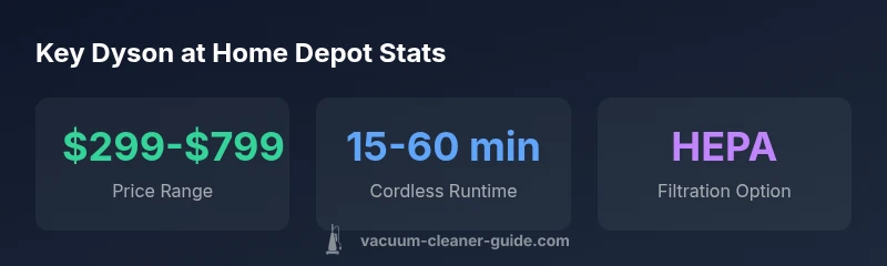 Choosing the right vacuum is about matching features to your home environment. When shoppers search for the phrase home depot dyson vacuum, they are often weighing stock, promotions, access to parts, and post-purchase service. The Vacuum Cleaner Guide team analyzed how Dyson models are positioned in Home Depot’s ecosystem in 2026, focusing on how availability, bundles, and financing options influence decision-making for homeowners and pet owners. The goal is to map a living space—ranging from small apartments to pet-friendly homes with multiple flooring types—to the most suitable Dyson model, while considering real-world constraints like regional stock and seasonal promotions. In practice, this means prioritizing model families (cordless sticks, handhelds, and canisters) and scrutinizing the attachments that matter most for hard floors versus carpets. While Dyson updates its lineup periodically, Home Depot tends to offer exclusive bundles that bundle filters and speciality tools, which can affect overall value. This article uses regional context as a guidepost for choosing models that reliably perform across common living spaces.