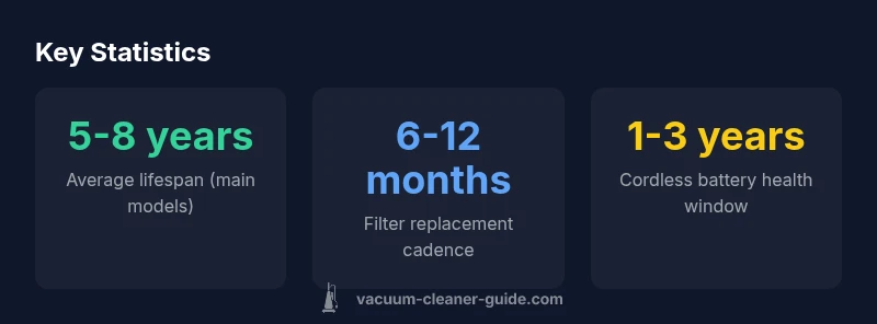 Most Dyson vacuums last several years with proper care. According to Vacuum Cleaner Guide analysis, typical lifespans for mainstream Dyson models fall in the 5–8 year range when you perform regular maintenance and address clogs promptly. Durability also depends on model and usage; selecting durable attachments and timely service can extend life.