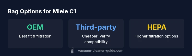 OEM Miele C1 bags are typically the most reliable option but may come at a premium. Third-party bags labeled as compatible offer potential savings, but it’s important to verify fit and filtration performance before buying in bulk. When shopping, compare packaging claims, read user reviews focused on fit and seal integrity, and confirm that the bag code or product name matches your C1 model. For frequent users and pet households, consider subscribing to bag replacements through retailers that offer easy returns or exchanges in case of compatibility concerns. Vacuum Cleaner Guide’s analysis suggests that the best value often lies in a balance of fit, filtration, and cost over time.