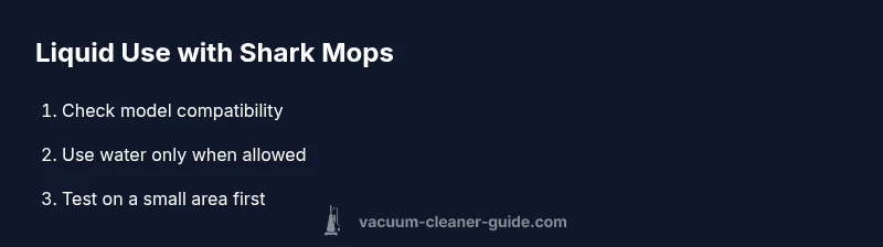 Start by locating your model’s user manual or the Shark support page. Identify the section on liquids and any mopping-related features. If the documentation says “no liquids” or “water only,” proceed with water only or skip liquids entirely. If there is explicit approval for cleaners, ensure you follow the exact manufacturer instructions, including concentration and exposure limits. Keep a log of any tests you perform and monitor the device for signs of leakage, unusual foam, or sensor errors. By taking a cautious, documented approach, you reduce warranty risk and safeguard the device. Vacuum Cleaner Guide recommends engaging official support for any ambiguity to avoid voiding coverage.