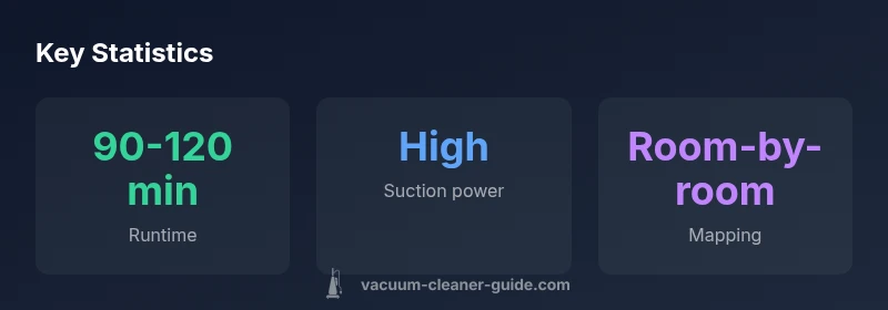 Around 90–120 minutes on standard mode, with shorter runtimes on higher suction settings in larger or carpet-heavy homes.