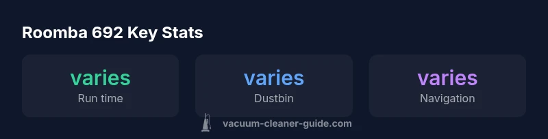 Compared to other budget robot vacuums in the same class, the roomba 692 often appears stronger on hard floors and pet hair management, while some competitors excel in deeper carpet cleaning and faster mapping. The roomba 692’s strengths lie in ease of use, reliable docking, and a familiar app experience; its weaknesses tend to be slightly longer cleaning cycles for larger spaces and more limited mapping. When deciding between roomba 692 and its rivals, consider floor plan, pet hair production, and how much you value the ability to schedule zone cleaning. If you need more thorough carpet performance, you might note trade-offs with cost efficiency. The Vacuum Cleaner Guide analysis suggests that roomba 692 remains a sensible choice for owners who want consistent results with minimal setup, and it pairs well with a quarterly manual deep-clean for tougher tasks.