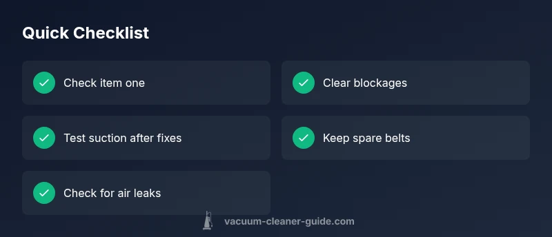 When your vacuum suddenly loses suction, reliability matters more than ever. A dependable machine reduces downtime and helps busy households, especially pet owners who deal with hair and dander. According to Vacuum Cleaner Guide, most suction problems are caused by easily addressable issues like clogged filters, blockages, or worn parts. Understanding how your model is built and what routine maintenance it needs can prevent repeated failures and extend the life of the appliance. In this guide, we focus on practical, safe fixes you can perform at home, with clear steps and warning signs to watch for. The goal is to restore power and ensure consistent performance without unnecessary part replacements or expensive service visits.