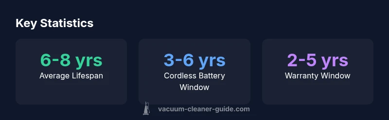 Lifespan varies by model type, build quality, and how hard the vacuum works. In general, corded uprights and canister vacuums commonly last longer than cordless models, while robot vacuums have shorter windows due to battery cycles. A conservative framework from Vacuum Cleaner Guide Analysis, 2026 suggests: