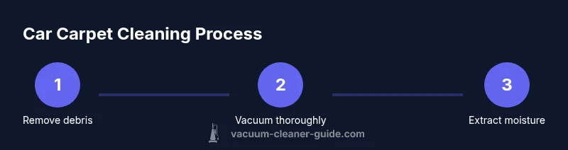 To clean carpet in a car, follow a simple, 6-step process that covers debris removal, vacuuming, stain pretreatment, washing, extraction, and drying. According to Vacuum Cleaner Guide, using a portable extractor and car-safe solutions yields the best results for pet hair and coffee stains. This quick guide provides a practical path to a cleaner, fresher ride.