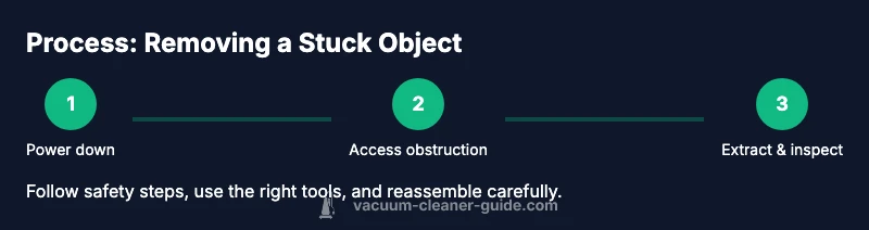 Objects get stuck in vacuum cleaners for a variety of reasons, from pet toys and shoelaces to hair globules and coins. When an item lodges in the hose or intake, suction can drop and the motor may strain as it tries to pull air past the blockage. According to Vacuum Cleaner Guide, most clogs occur in areas that are accessible yet not designed for regular access, such as the hose, wand, or canister chamber. Recognizing common culprits helps you prepare before you inspect, reducing the risk of accidental damage. With a methodical approach, you can retrieve the object and restore suction without unnecessary disassembly or costly repairs.