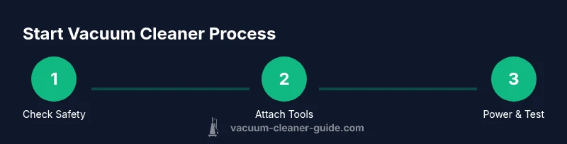 Starting a vacuum cleaner may seem straightforward, but safety always comes first. A rushed startup can cause motor strain, electrical faults, or personal injury from a moving brush. Before you switch on the power, perform a quick safety check: inspect the power cord for damage, ensure the device is unplugged while you change attachments, and clear the area of cords and clutter. According to Vacuum Cleaner Guide, safe startup practices combine stable power, clean surfaces, and proper attachments. If you have a pet with long fur, remove hair from the brush before powering up to avoid jams. Verify you’re using the correct outlet, as overloaded circuits can trip breakers. By following these precautions, you minimize overheating, sparking, and unnecessary wear on the machine. This foundation sets the stage for an efficient cleaning session, whether you’re tackling carpets, hardwood, or upholstery.