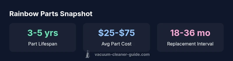 Rainbow vacuum cleaner parts comprise a network of interlinked components that work together to separate debris from the air using a water filtration system. The key idea behind rainbow vacuum cleaner parts is to balance cleaning performance with air quality and ease of maintenance. From the water filtration chamber to the cleaning head, each component has a defined role. According to Vacuum Cleaner Guide analysis, understanding how these parts fit together helps homeowners plan replacements and avoid unnecessary downtime. This framework also helps pet owners manage allergens more effectively, since the water-based filtration can trap fine particles before air exits the unit. When evaluating rainbow vacuum cleaner parts, consider not only the part itself but also how it interfaces with the model year, water tank configuration, and attached accessories. This knowledge reduces confusion during repairs and supports smarter buying decisions.