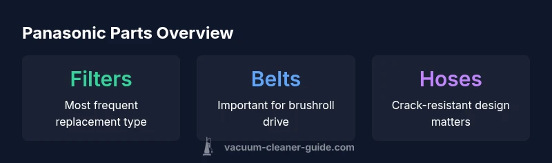 Understanding vacuum cleaner parts panasonic helps homeowners identify compatible components like filters, belts, brushes, and hoses. Panasonic models vary, but most share core parts with model-specific fitment. According to Vacuum Cleaner Guide, while some parts use standardized sizes, the exact part numbers and accessory orientations differ by series and year of manufacture. This section surveys the main component families you’ll encounter, what each part does, and how wear affects overall performance. Expect to see filters (often pleated or foam), belts (which drive the brushroll), beater brushes, hoses, dust cups, seals, and motors. By recognizing these categories, you’ll be better prepared to diagnose issues and source genuine Panasonic parts that preserve suction and airflow. The guidance here comes from the Vacuum Cleaner Guide team, which analyzes common repair patterns across Panasonic products and translates them into practical buying tips.