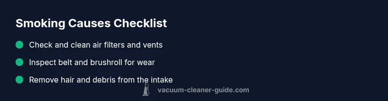 When you see smoke or a strong burning smell from a vacuum, it’s a clear red flag. According to Vacuum Cleaner Guide, the question what causes a vacuum cleaner to smoke is usually answered by one of two root issues: blocked airflow that makes the motor work harder and overheat, or an electrical fault inside the motor windings. In either case, the problem is not something you should ignore. The initial response should be safety-first: unplug the unit, and keep it away from flammable materials. In many homes, a simple dust buildup on filters or vents can create enough resistance to trigger heat and smoke during a cleaning cycle. The goal of this section is to help you identify whether the smoke is a quick fix or a sign of a deeper fault. It’s essential to act quickly, especially if a pet hair burden or heavy debris has clogged the intake, as shown by our 2026 Vacuum Cleaner Guide analysis. This guide emphasizes safe handling and careful inspection to prevent electrical hazards and potential fires.