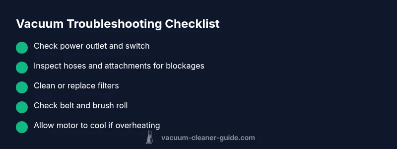 Urgent, practical guide to diagnosing why your vacuum cleaner stops working, with safe fixes, a diagnostic flow, and simple maintenance tips to prevent future outages.